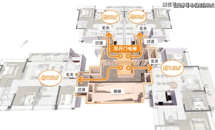 类专梯入户 | 两梯四户梯户比+双开门电梯,类专梯专户豪宅高标