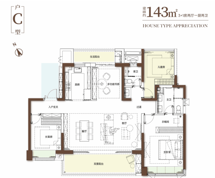 产品类型:首推一期臻园低密洋房,主力户型为127-143㎡三四房,部分户型带花园或双露台,专梯专户设计;二期和园为高层住宅,主力户型105-127㎡。