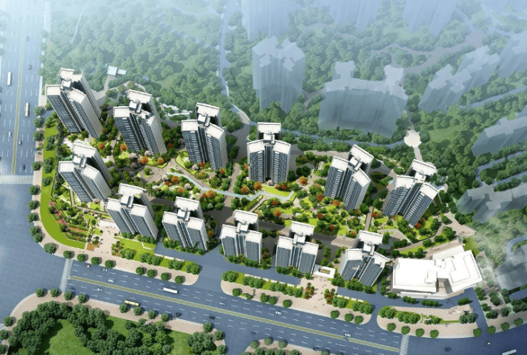 建筑规划:项目采用现代简约建筑外立面风格,围合式布局,由 12 栋高层住宅和 1 栋公建配套组成,营造出开阔的视野。