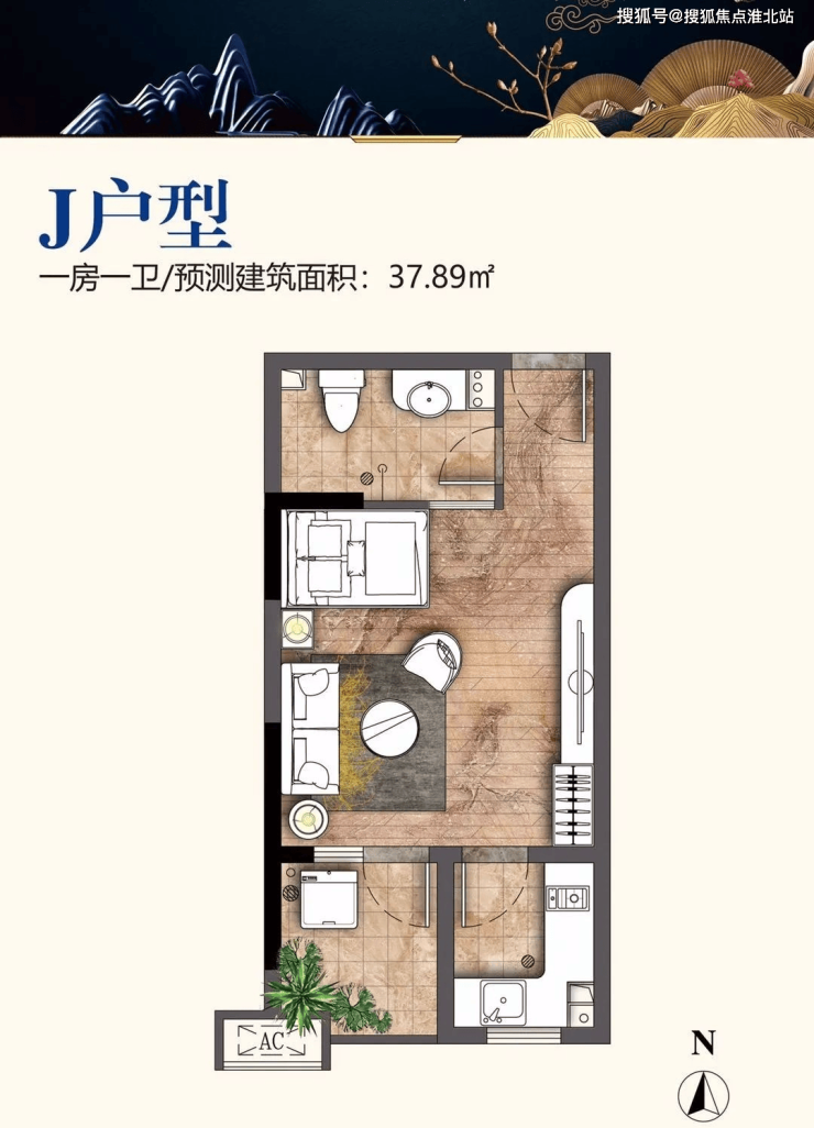 项目户型:38.23平米一房