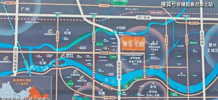 • “两大高铁站”:南向约30分钟到达石龙东莞站,可搭乘和谐号;北向约20分钟到达罗浮山站,搭乘广汕高铁,半小时内可通达广州、深圳。