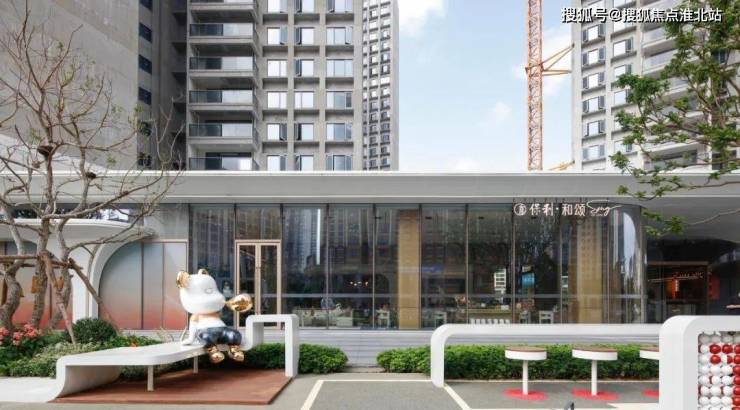 经过实地考察,我了解到这是保利“和谐字系”的专属卡通ip和瑞雄。除了瑞雄,营销中心门口还有由休闲座椅、休闲步道和多种绿色植物组成的充满活力的街区,这是深入研究人居后生活场景的重建。