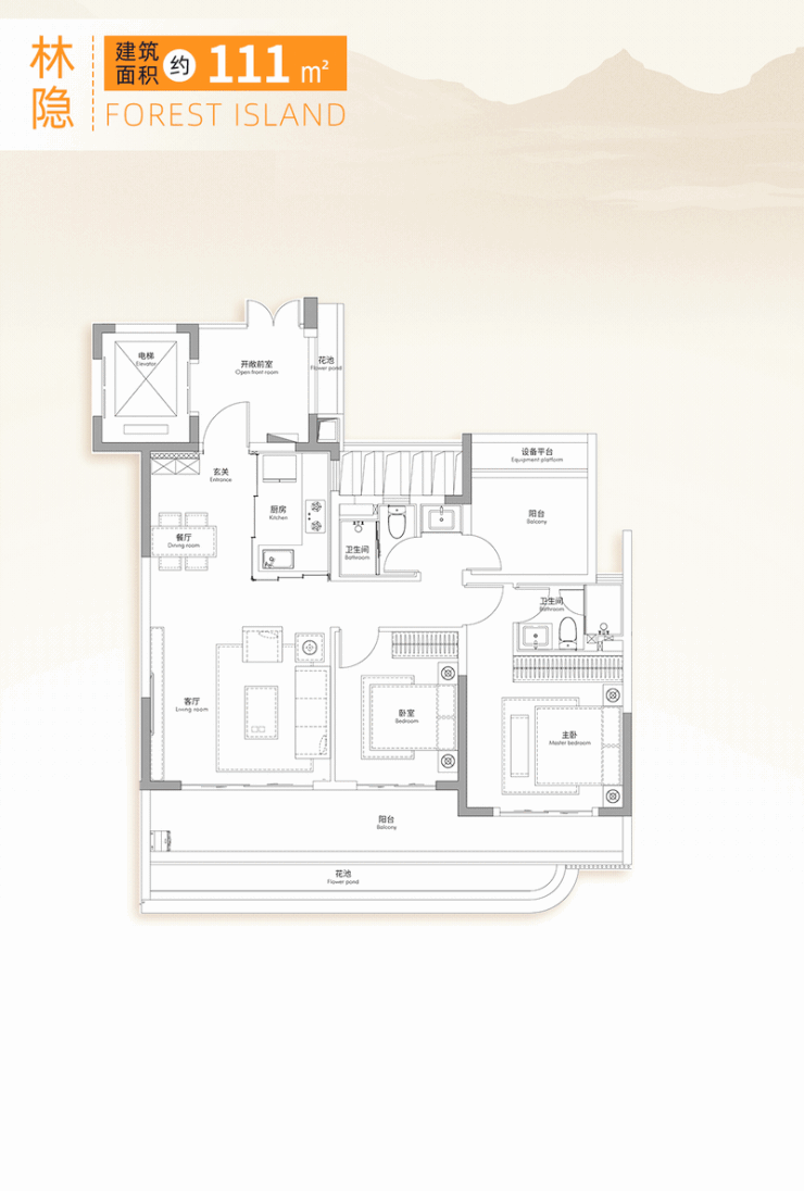 项目主推的111㎡户型,其拥有 更小的纸面数字,更大的使用空间,更强悍的产品力。