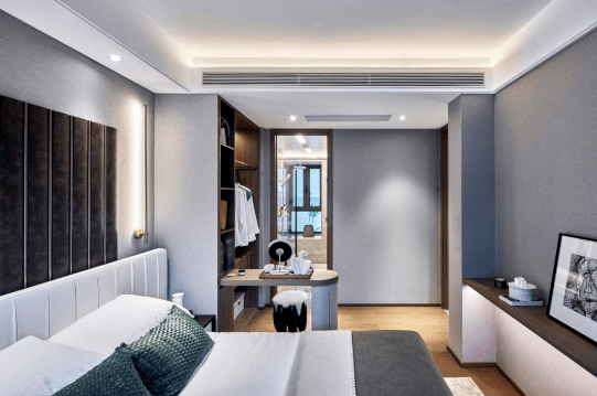 装修标准:精装交付,配备AO.史密斯地暖、百朗新风、品牌厨电等,主卧带独立衣帽间和卫生间。