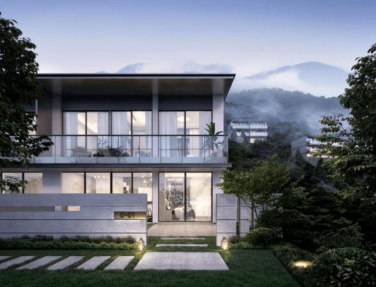 低密现房:容积率仅0.87,涵盖127-269㎡现房宽墅,部分户型南向面宽达9.6米,采用大面积玻璃幕墙与铝板材质,兼顾私密性与通透感。