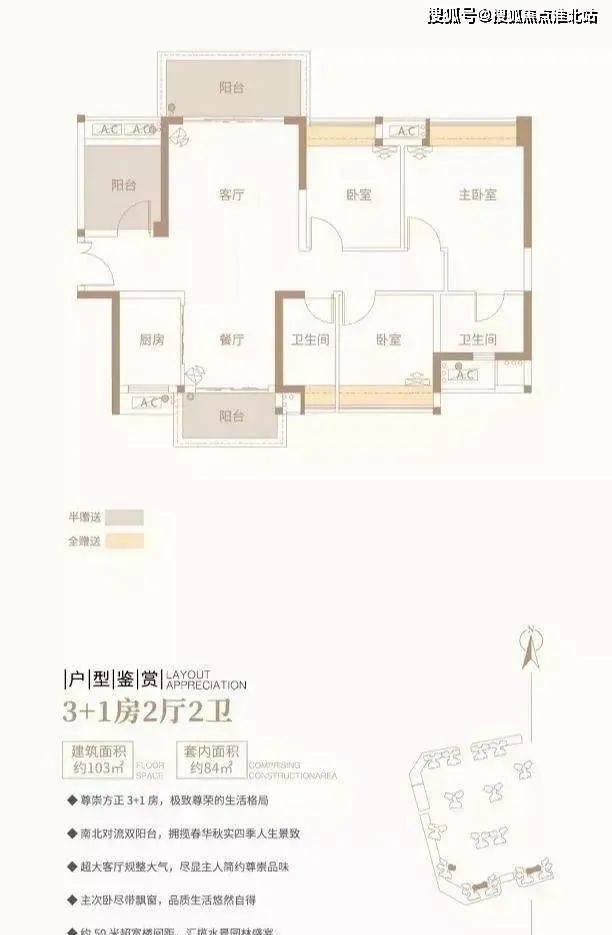 3+1房2厅2卫/约103平方米/南北对流双阳台