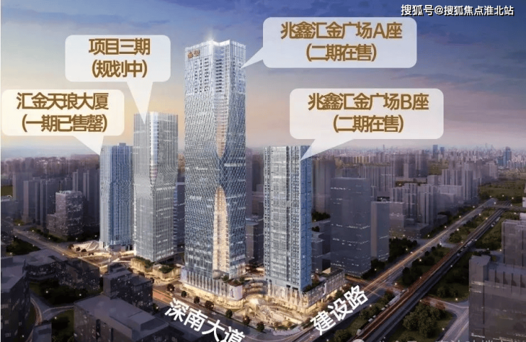 兆鑫汇金广场项目占据深南大道400m沿街封面,262m地标高度,是金三角城市更新首发之作,涵盖了商业办公、商务公寓、总裁公寓等业态的约28万㎡综合体