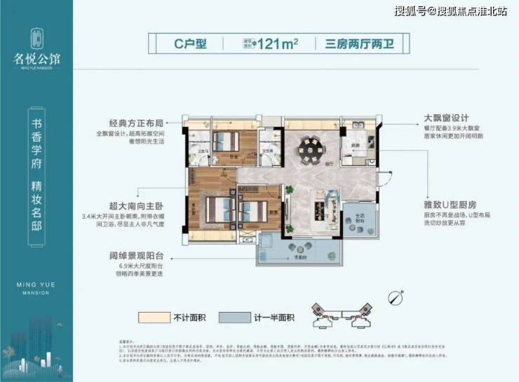 想要书房,还想要茶室?名悦公馆满足生活N+1种精彩,121㎡户型配备超大入户花园,百变空间随心享;6.9米大尺度阳台,领略四季美景更迭,餐厅配备3.9米大飘窗,居家休闲更加开阔明朗,经典方正布局 布局阔气,功能齐全,超高拓展空间,演绎家庭欢聚日常。