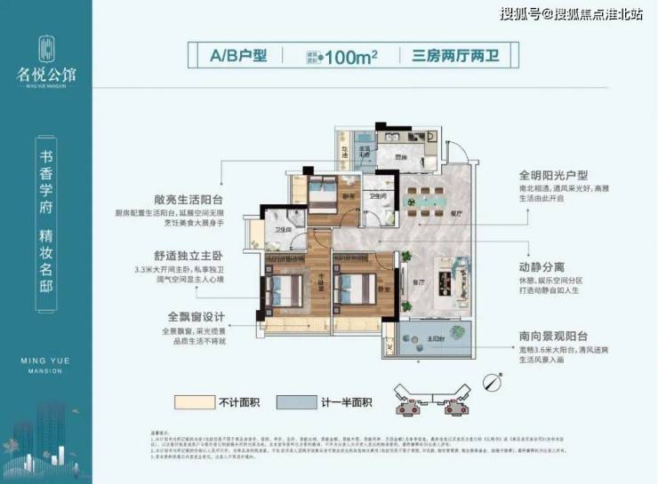 其中,100㎡户型,配备3.6米宽畅大阳台,清风送爽,生活风景入画;厨房配置生活阳台,延展空间无限,烹饪美食大展身手,舒适独立主卧3.3米大开间主卧,私享独卫,阔气空间显主人心境;动静分离 休憩、娱乐空间分区,打造动静自如人生。