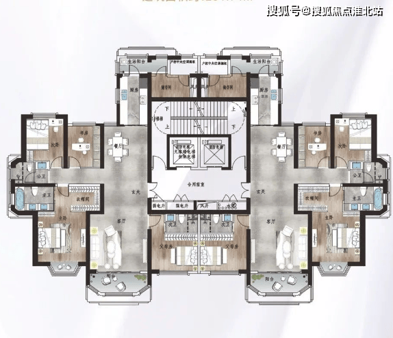户型特色:户型设计合理,动静分区明确,功能布局完善;大平层户型客厅和卧室开间阔绰,部分主卧套间带有独立衣帽间、卫生间和景观阳台,舒适度较高。