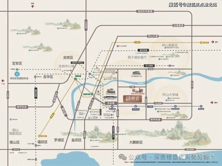 项目坐拥一河一带一馆六公园,周边山水资源环绕,坪山河景马恋山景映入眼帘。