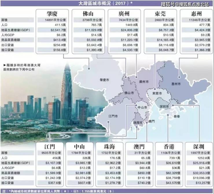 未来粤港澳大湾区“九市两特区”中,以香港、澳门、广州、深圳四市为“中心城市”,定位各有分工。