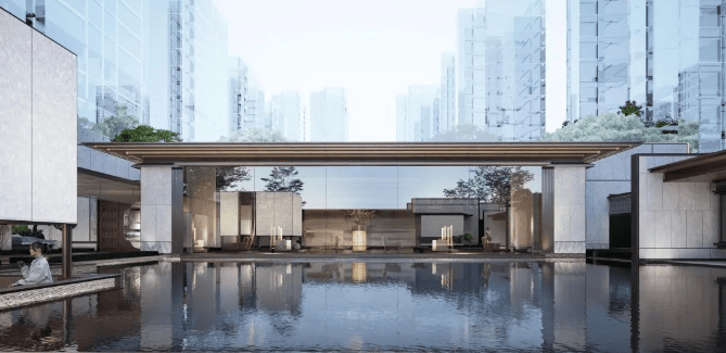 园林景观:以元代画家倪瓒画作为蓝本,打造 “三重归家礼序” 景观,包含叠水景观、星空草坪、樱花步道等八大主题园区,营造出东方风雅的园林氛围。