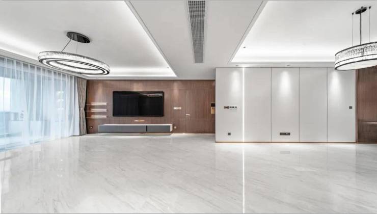 客厅外面是超宽的湖景阳台,犹如巨大取景框,无遮挡直面兰香湖。
