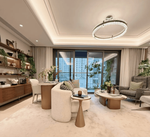 景观设计:以35%高绿化率为特色,打造“一环两轴三园六院”立体景观体系,配备约1000㎡儿童游乐区和宠物友好设施。