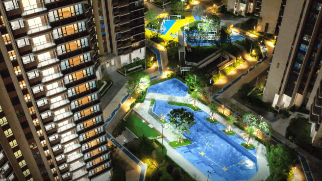 园林景观:园林设计融入新加坡花园城市基因,打造了归家 - 社交 - 纯享 - 亲子 - 运动 5 大触点感知情景,有阳光庭院、约 600㎡森林泳池、童梦天地等,还设有东莞首个轻运动环及 400 米星光跑道。