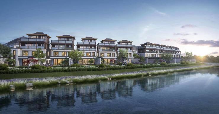 建筑与园林:建筑以唐风宋韵为蓝本,采用歇山顶、飞檐戗角、万字纹花窗等传统元素,外立面选用葡萄牙米黄石材与铝板,呈现出 “王府大宅” 的恢弘气度。园林方面,特邀香山帮匠人手工雕琢,以苏州网师园为蓝本,打造 “一轴两环九巷十八景” 景观体系,融入曲水流觞、月洞门、风雨连廊等苏式园林符号。
