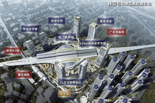 采用 TOD5.0 模式,将高铁、城际、地铁与产业、商业、居住等融合,实现站城一体。项目涵盖约 19 万平写字楼群、大型商业 mall(规划中)、高级酒店等全维业态。