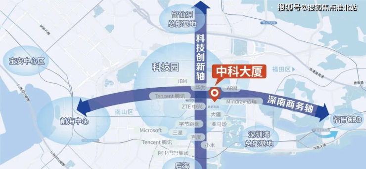 项目地处深圳科技创新轴与深南大道商务轴交汇核芯,南北串联深圳核心科创产业集群,东西链接深圳中央商务领地。