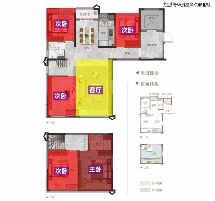 可改造成四房,就算是三代同堂+二孩,也可生活无忧。