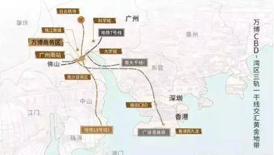 从地理位置上来看,万博CBD位于大湾区“9+2”城市群地理中芯位置附近;同时也是广州发展中轴与南大干线经济带交汇轴芯。万博CBD作为广州市和番禺区的重点建设项目,是番禺未来经济的增长极,总体量约548万方的超级商务集群,一面通过华南最大高铁站——广州南站,串联华南主要城市经济圈,一面联动广佛城轨、广珠城轨、广莞惠城轨等,贯通湾区生活圈,未来形成湾区轴芯CBD,已是必然。