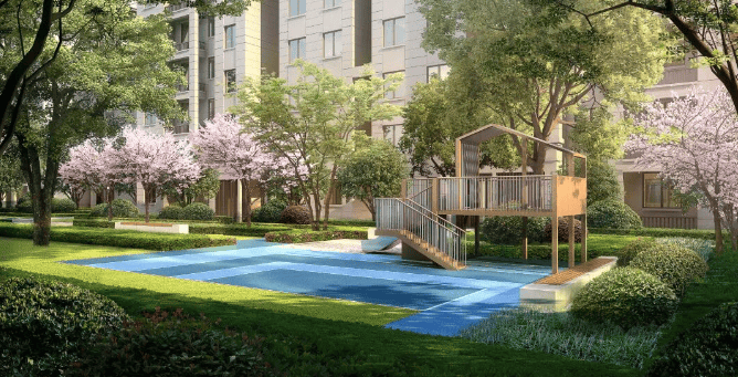 园林景观:中央草坪将绿植与雕塑融为一体,多样化的灌木、草丛、地被花卉,形成高低错落、层次分明的宅间盛境。同时,社区打造为 “健身、休闲、童玩” 一体的全龄生活场,配备健身设施、儿童游乐区、漫步跑道等。