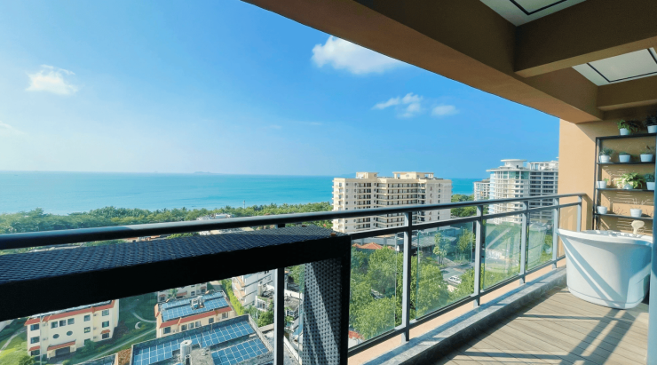 建筑与景观:现代简约风格,全明户型设计,平层层高 3.4 米,270° 环幕瞰景阳台可尽揽一线海景及 4A 级南湾猴岛风景区;园林由贝尔高林设计,以滨海度假为主题,打造 “观海步道 + 沙滩公园” 沉浸式场景。