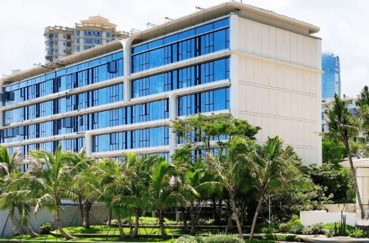 设计:游艇美学流线型外立面,玻璃幕墙 + 铝板,适配滨海气候