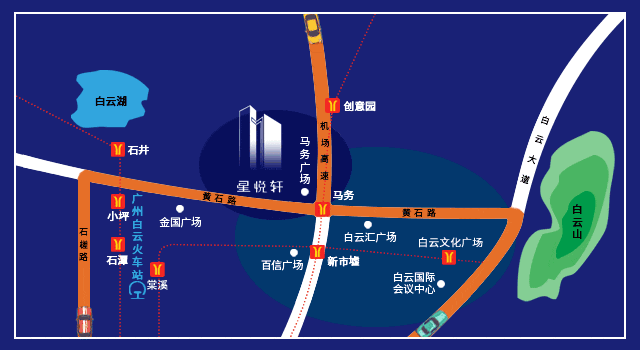 星悦轩拥揽白云新城CBD、白云TOD商圈,三地铁环绕,出门可达14号线二期马务站(在建),毗邻12号线白云站(在建)、24号线黄石站(规划中),1站白云TOD,1站新市墟站,4站广州火车站,再换乘7站即达珠江新城,轻松畅达全城。