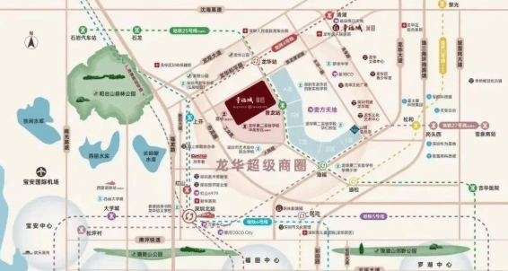 文体配套:1 公里内有龙华公园、规划公园绿地,3 公里可达阳台山森林公园,2 公里范围内汇聚深圳书城龙华城、简上体育综合体等 8 大文体地标。