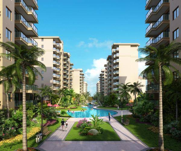 内部:热带风情中央园林、健康步道、儿童游乐区、架空层休闲 / 书吧,人车分流;配套一座度假酒店(含餐饮、宴会功能)