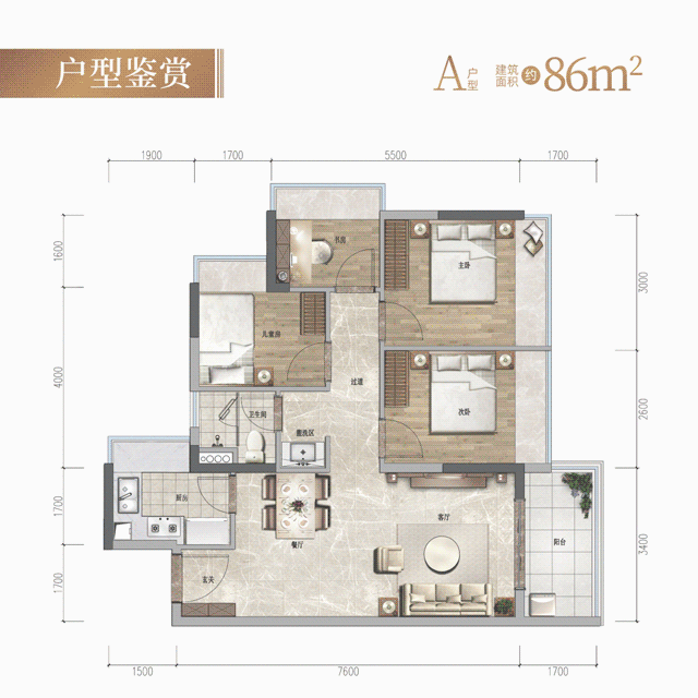 约86㎡灵动四房 东坑臻稀户型