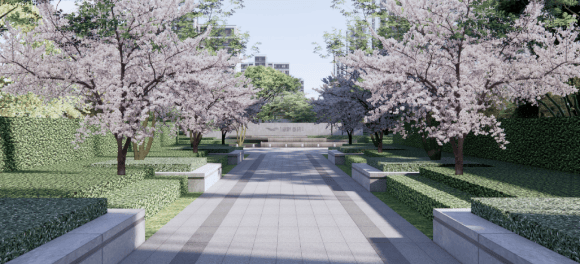 细节:在园林的植物中,通过广玉兰、樟树、木槿等乔灌植物释放出自然鲜活的绿氧,构成偌大的自然氧吧。同时,透过不规则形式布局与各个楼栋间的不同地形,社区的造景丰富了园林的层次感,在园林的整体营造将亲水的湖居生活作为灵感,通过涌动的水系与归家路网打造多重立体景观空间。