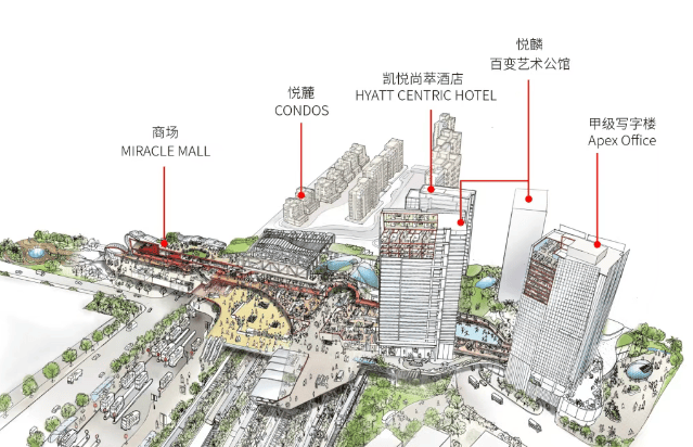 自带天荟广场(已开业,含永辉超市、CGV 影院、星巴克等)。
