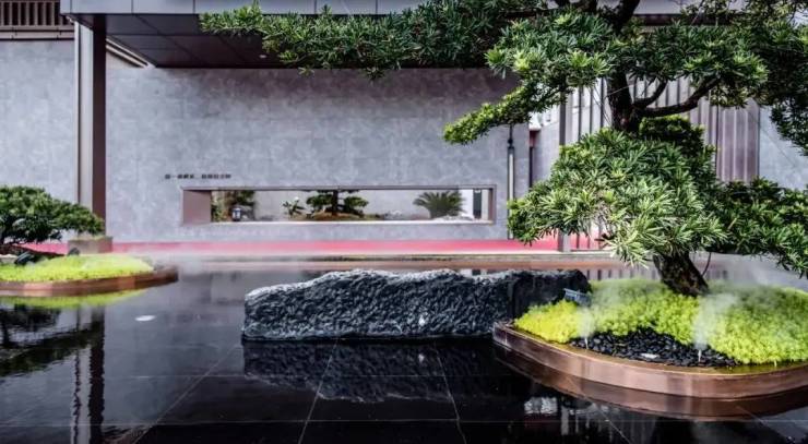 社区内部:山水比德团队打造的东方诗意园林,人车分流,儿童活动区、健身步道、邻里会客区;1–3 层局部配套商业(便利店、干洗店等);