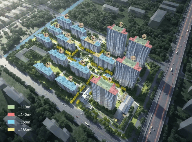 基本信息:占地面积约5.9万㎡,建筑面积约11.8万㎡,容积率2.0,绿地率35%,总户数804户,产品为低密洋房+高层,户型面积119-188㎡,车位配比1:1.77,物业公司为仁恒物业(3元/平米/月)。