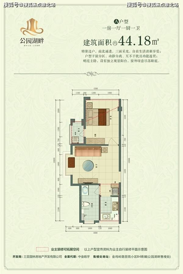 三亚公园湖畔项目楼栋数共3栋,层高12-20层,共计466户,停车位187个,共有3个户型:约43.1㎡的一室一厅、约44.88㎡的南北通透开间。均价约27000元/㎡,总价约120万元/套起,是三亚市区占据优势位置的小户型在售项目。