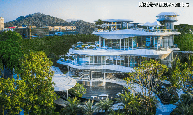 设计理念:邀请国际名师伍兹贝格执笔设计,吸收了三亚当地少数民族黎族的竹编工艺,同时融合三亚市市花三角梅元素,寓意 “绽放鹿城”,打造国际商务绿谷。
