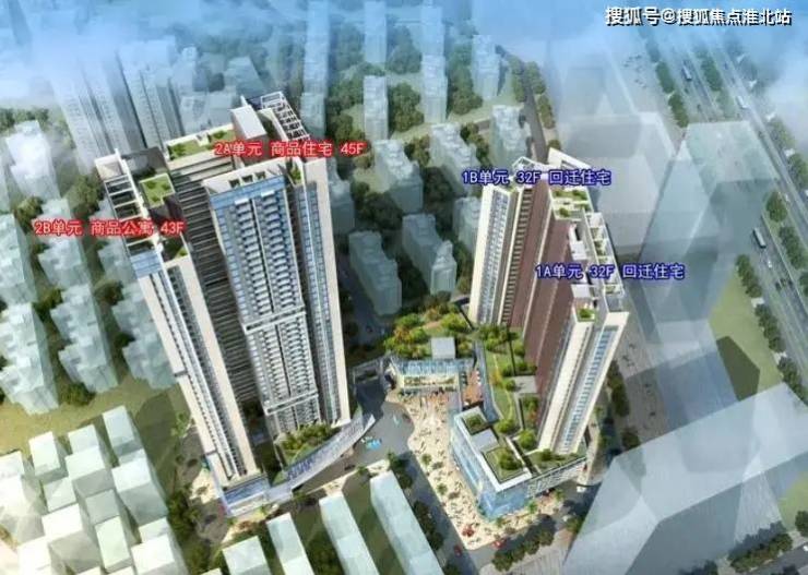 项目分为01、02两个地块开发,仅有2栋,建筑最大层数为地上45层+地下4层。产品包含了住宅、商务公寓、商业、办公以及文化室、社康中心等公共配套设施。