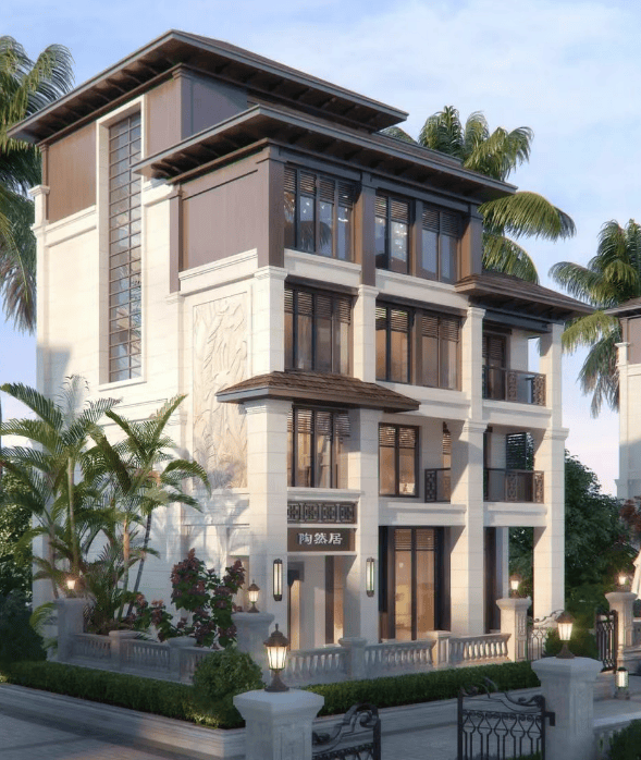项目特色:该项目靠山临海,拥有百分百原始绿化,地处北纬 18°,年均气温 25°C,负氧离子浓度高,PM 值低,原始森林覆盖率高达 60%,是天然氧吧。建筑采用欧式风格,户型空间利用率高,15 栋别墅分布在山岭腹地,私密性强,能为业主提供专属的居住体验。