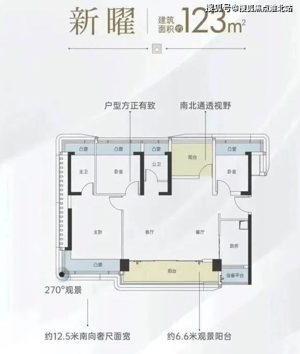 123㎡的 4 房 2 厅 2 卫:户型方正,横厅设计,空间开阔大气,南北通透。客厅开间宽敞,连接景观阳台。主卧套房设计,带有独立的卫生间和衣帽间,其他卧室也都较为宽敞。U 型厨房设计,操作空间宽敞。公卫和主卧卫生间均采用干湿分离设计,整体户型的朝向较好,得房率约在 90% 以上(包含赠送)。