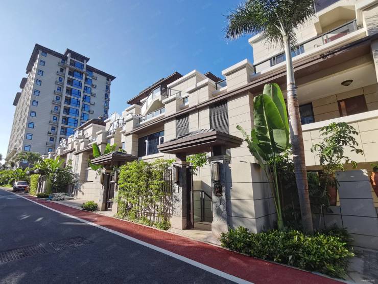 基本信息:由三亚新海裕实业有限公司开发,雅居乐物业提供服务。小区占地面积约 32,606㎡,建筑面积约 51,312㎡,容积率 1.2,绿化率 40%。总楼栋数为 30 栋,包括 3 栋 12 层度假公寓和 27 栋别墅,总户数 418 户,其中住宅 330 户,别墅 88 户,停车位共 356 个,产权年限 70 年。