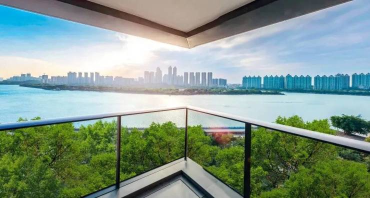 南向一线江景 + 台地布局:距江仅 60 米,户户朝南望江,台地抬高 15 米,防潮降噪,视野无遮挡。