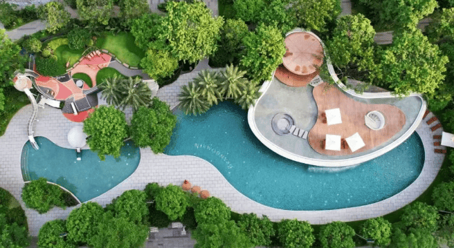 园林设计:由奥雅设计李宝章、山水比德等大师团队操刀,打造 “山海林相,三境十景” 园林景观,有海口首例双层叠水瀑布泳池、春花园、犹清园等景观节点,营造归家即度假的体验。