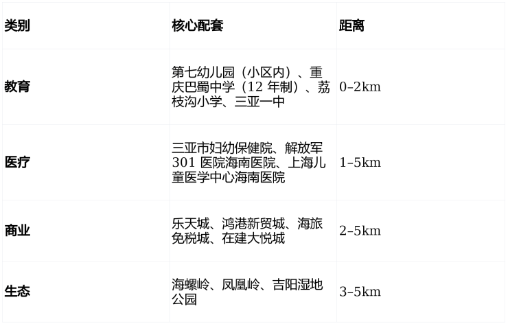 通勤距离:三亚站约 4km,凤凰机场约 12km;10 分钟到 CBD 办公区,15 分钟可达亚龙湾,25 分钟到三亚湾 / 大东海