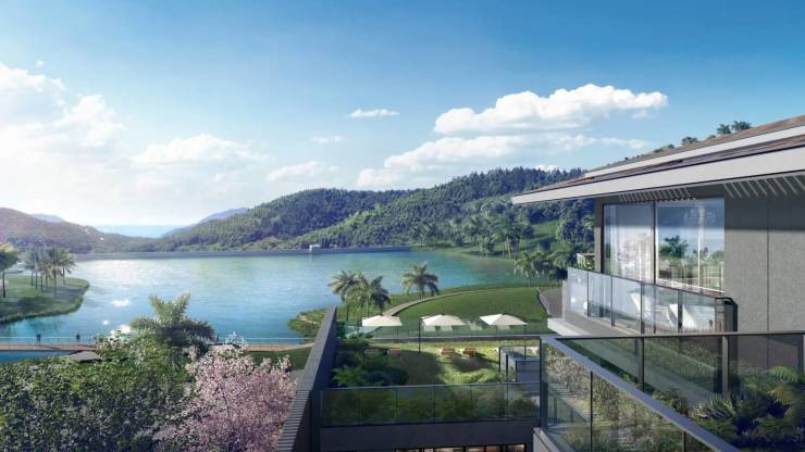 建筑与公区:热带山地度假风格外立面,约 1600㎡湖滨扇厅、约 3000㎡业主会所(无边际泳池、健身房、私宴厅),内部登山步道、湖滨栈道;