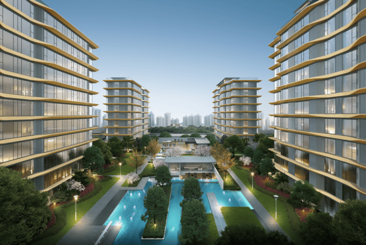 园林景观:双水围合地块,打造 3.1 万㎡曲境园林,含白鹭公园、湿地观鸟台等 9 大主题花园,移植 30 株百年古树,还设有夜光跑道,构建全龄生活场景。