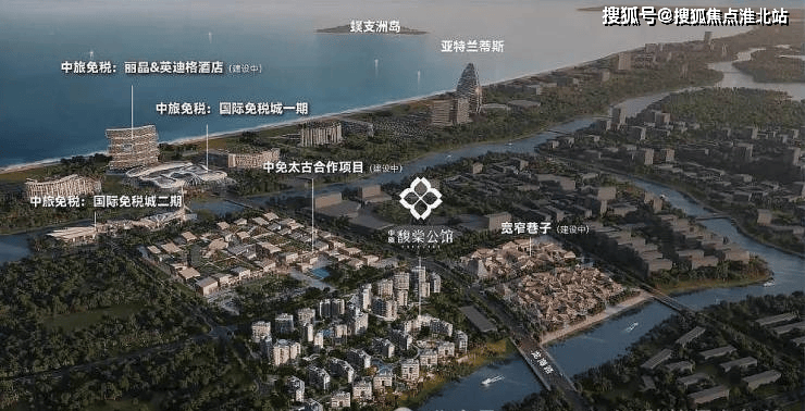 该项目位于三亚市海棠湾黄金地段北端,与亚龙湾和清水湾相连。项目位于中旅免税城西北侧。用地周边有河道及景观绿化带。