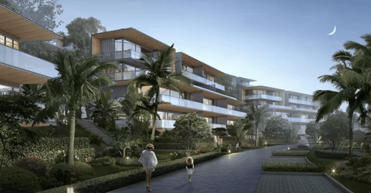 绿城如意山居位于海南五指山,由绿城集团开发打造。项目占地 490 亩,是一个大社区。小区容积率为 3.0,打造了 15000㎡的超大绿化面积,垂直绿化特色明显。