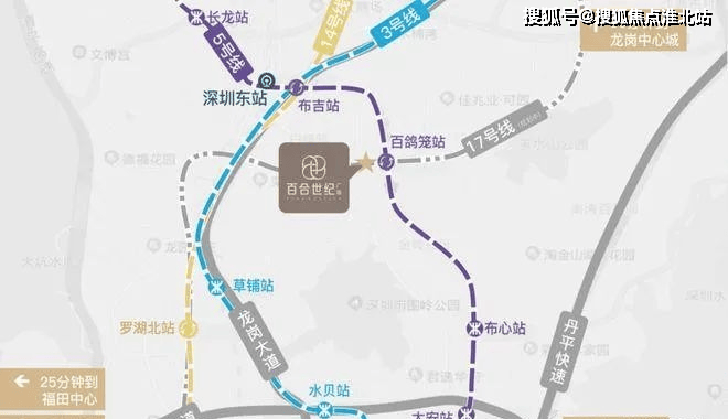 交通:项目于5/17号线(建设中)百鸽笼站双地铁上盖,3/14号线环绕,1站瞬达罗湖,4站抵达福田芯。